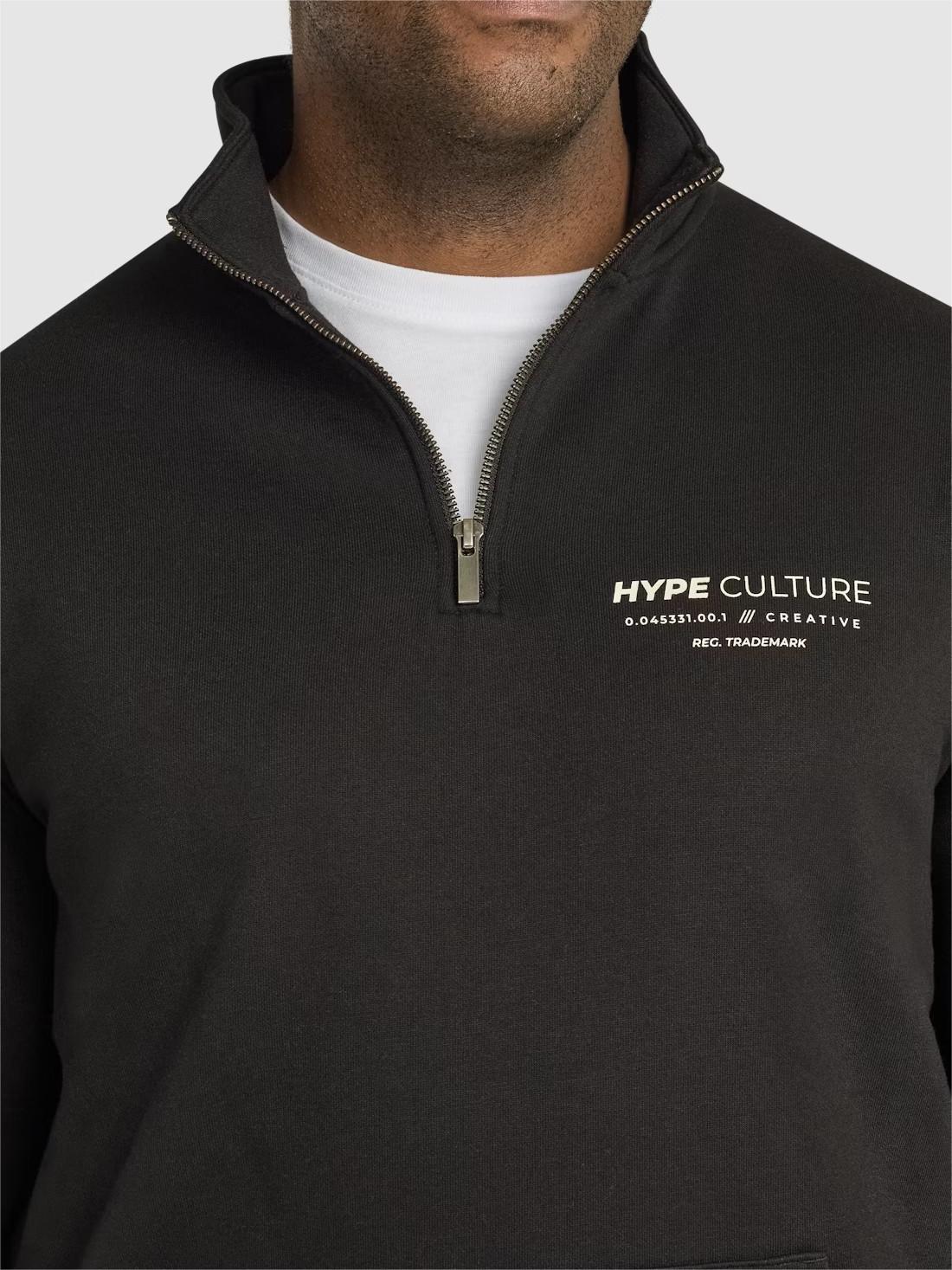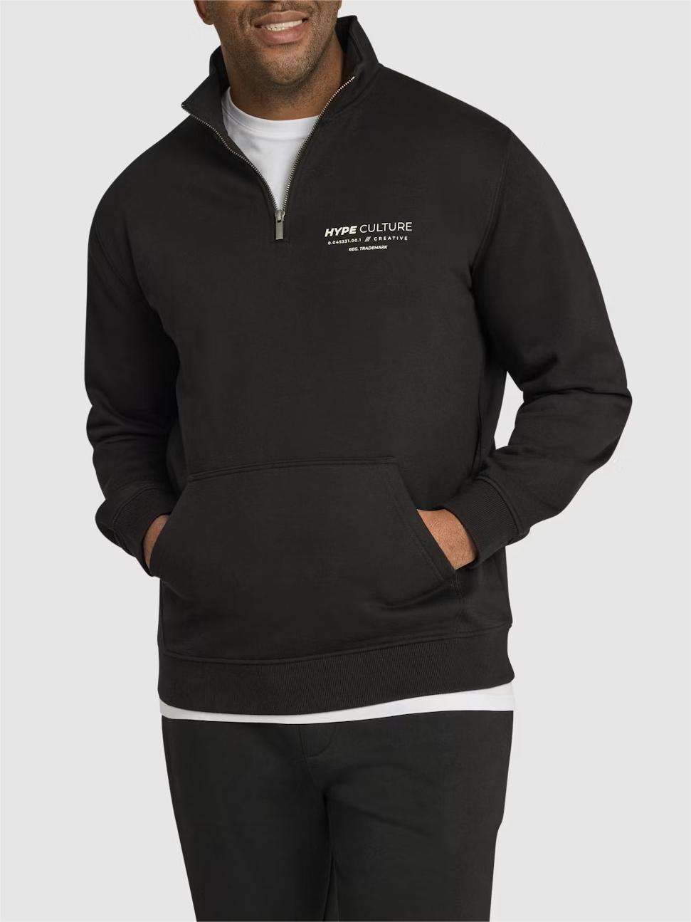 BLACK PRINT ZIP NECK SWEAT